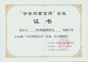 浙江省工商企業信用(AA級)守合同重信用單位